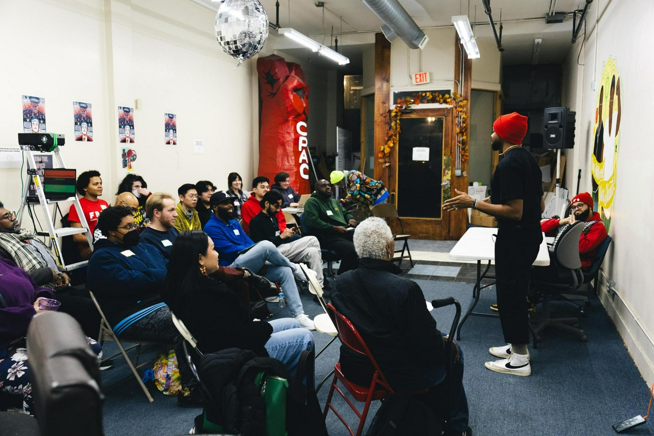 Kobi Guillory, a FRSO leader and middle school science teacher, opened the event with a presentation on revolutionary movements. He described how oppressed workers and colonized peoples have always fought back against their oppressors, and said we are called to do the same today.