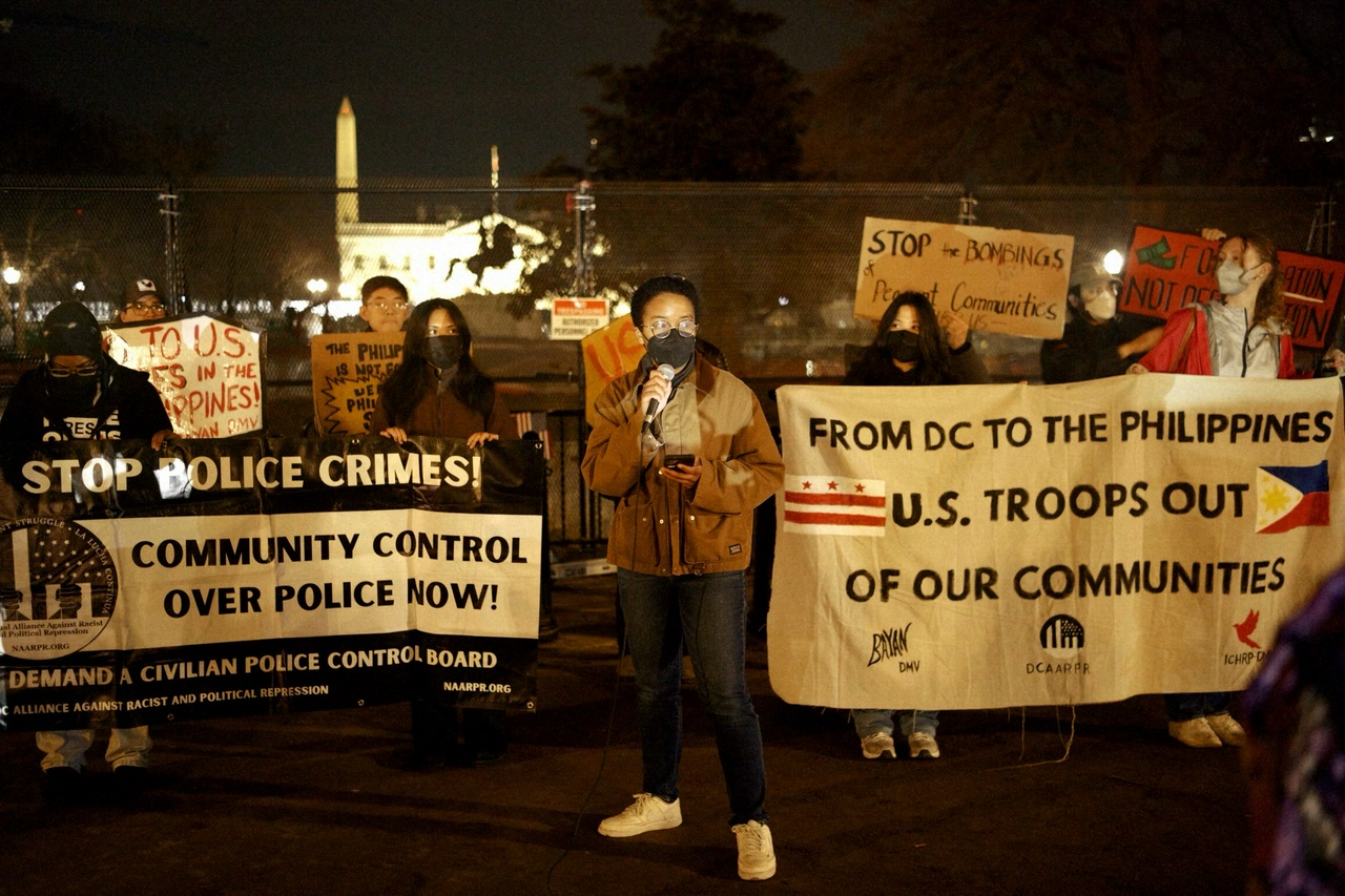 The march ended at the White House where the group demanded an end to the militarization of Black and brown communities in the U.S. and the Philippines.