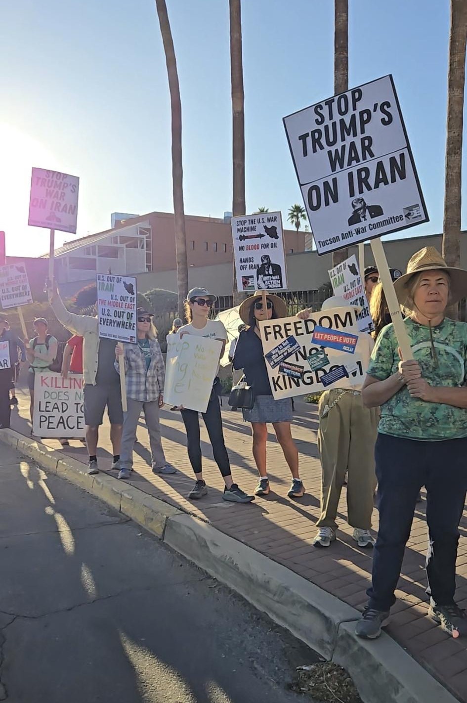Tucson, AZ – On Tax Day, April 15, more than a dozen organizations in Tucson united against Trump’s war on Iran. Organized by the Tucson Anti-War Committee (TAWC), the rally outside the Federal Building downtown drew a crowd of around 80 people and lots of honks in support.