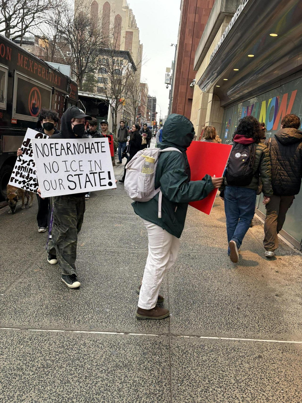 New York, NY – On March 12, around 20 NYU students and faculty picketed at the front of the Kimmel Center, where the university senate was set to take place. The Students for a Democratic Society at NYU organized the picket to demand a sanctuary campus.